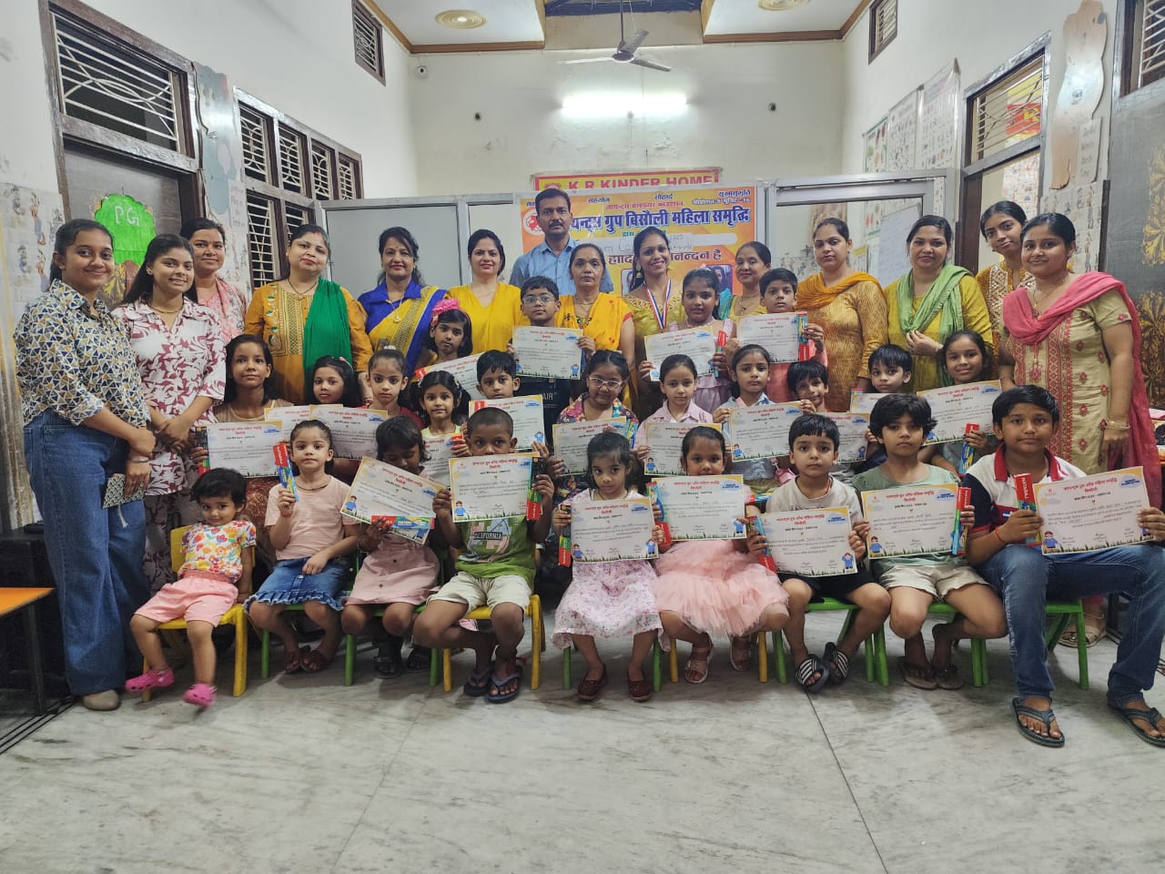 नगर के आर. किंडर होम में आयोजित कार्यक्रम में बच्चों ने डांस परफॉर्मेंस किया और दस दिनों में जो एक्टिविटी सीखी उसे करके भी दिखाया। जायंट्स ग्रुप के यूनिट डायरेक्टर अनुपम वार्ष्णेय ने कहा कि महिला समृद्धि ने समर कैंप लगा कर बहुत अच्छा कार्य किया है। जिसमें बच्चों ने अलग अलग एक्टिविटी सीखी है। ग्रुप की अध्यक्ष अंजलि अग्रवाल ने कहा कि समर कैंप के माध्यम से बच्चों में कलात्मक व रचनात्मक प्रवृत्ति का विकास होता है। ग्रुप के माध्यम से इस तरह के प्रयास जारी रहेंगे। अंजलि अग्रवाल ने ग्रुप की सदस्य रूपम गुप्ता, कंचन सक्सेना, सचिव आंचल वार्ष्णेय तथा कोषाध्यक्ष ऋतु साहनी का धन्यवाद दिया जिन्होंने समर कैंप के आयोजन में अपना सहयोग प्रदान किया। इस अवसर पर ग्रुप की अध्यक्ष अंजलि अग्रवाल, सचिव आंचल वार्ष्णेय, कोषाध्यक्ष ऋतु साहनी, रूपम गुप्ता, पारुल अग्रवाल, पिंकी वार्ष्णेय, सरिता वार्ष्णेय, राखी वार्ष्णेय, स्वाति गुप्ता, रोजी अग्रवाल, मानसी गर्ग, शिवानी अग्रवाल, रूबी अग्रवाल, अंशिका गर्ग, ममता यादव, स्मिता यादव, रुचि वार्ष्णेय, सपना वार्ष्णेय, प्रीति वार्ष्णेय, रोचन अग्रवाल, कंचन सक्सेना, रेनू अग्रवाल, सिम्मी साहनी, राधिका अग्रवाल आदि सदस्य उपस्थित रहे।