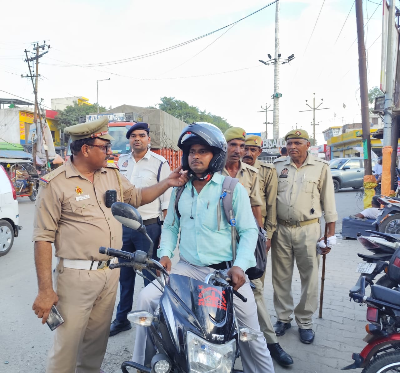 बिसौली, बदायूं । त्योहारों के मौसम में ट्रैफिक पुलिस ने नगर में वाहन चेकिंग अभियान चलाया। अभियान के तहत दर्जनों वाहनों को चेक किया गया। इस दौरान आधा दर्जन वाहनों के कागजों में कमी पाई गई उनका चालान कर दिया गया। इस समय नगर में भीड़ – भाड़ बढ़ गई है। ट्रैफिक सब इंस्पेक्टर सुरेश त्यागी ने बताया कि हमारा मकसद केवल चालान काटना नहीं, बल्कि लोगों को जिम्मेदार चालक और समझदार यात्री बनाना है। स्मार्ट ड्राइव करें, सुरक्षित रहे। सब इंस्पेक्टर ने बताया कि हेलमेट सिर्फ चालान से बचने का जरिया नहीं, बल्कि जान बचाने का कवच है। उन्होंने कहा कि पुलिसकर्मी मिशन शक्ति के तहत स्कूलों, कॉलेजों और सार्वजनिक स्थानों पर जाकर लोगों को सड़क सुरक्षा के नियमों के बारे में जानकारी दे रहे हैं।