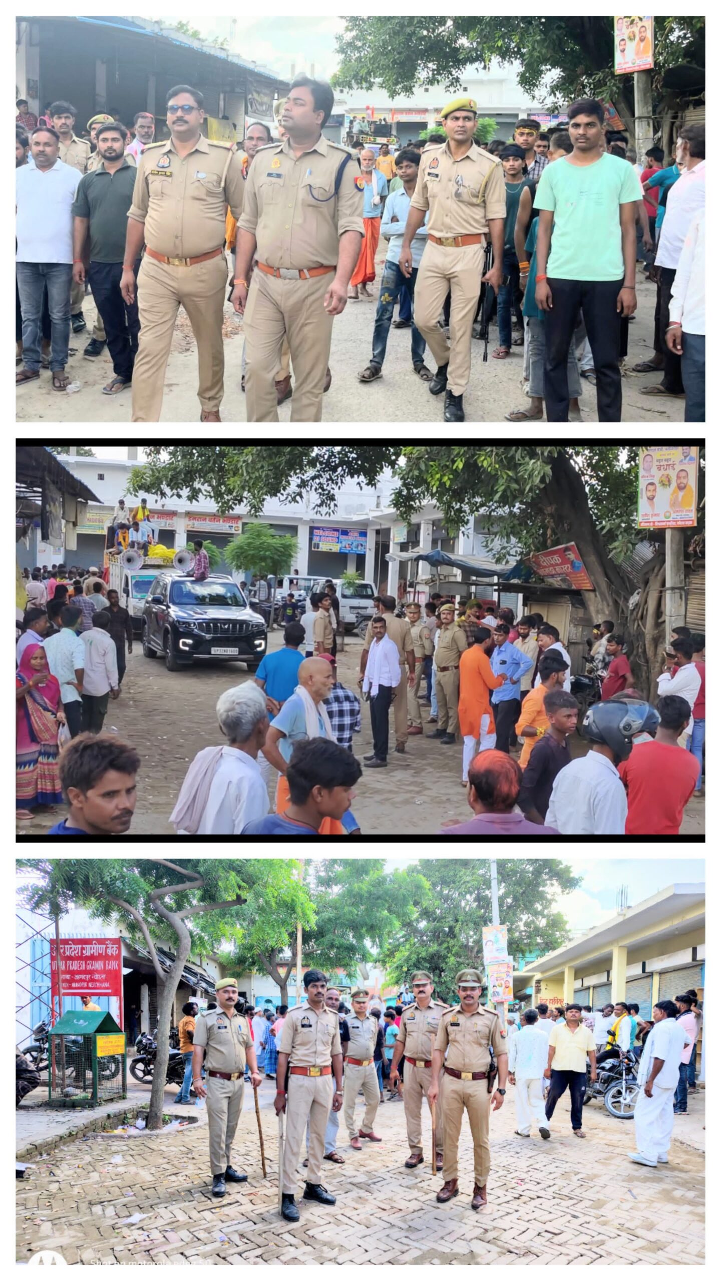 बाराबंकी अहमदपुर / कोतवाली जैदपुर के अहमदपुर चौकी के अंतर्गत नवरात्री, दशहरा पर्व के बाद ,ग्राम न्योछना व बांभोरा लोदी,से महामाई आदिशक्ति दुर्गा माता की प्रतिमा विसर्जन यात्रा बड़े धूमधाम निकाली गई। विसर्जन यात्रा ग्राम पारा से देवकली होते हुए,ग्राम अहमदपुर पहुंची।उसी दौरान ग्राम प्रधान कलीमुद्दीन अहमद ने ग्राम वासियों के साथ माता रानी के भक्तों पर पुष्प वर्षा करते हुए भव्य स्वागत किया आपसी सौहार्द भाईचारे की मिसाल पेश करते हुए हिंदू, मुस्लिम भाईचारे का संदेश दिया इसी दौरान डॉक्टर प्रमोद शर्मा ने शरबत का भंडारा कर पूरी यात्रा में भक्तों को प्रसाद वितरण करते रहे ।आपको बता दें कि संवेदनशील इलाकों में अतिरिक्त पुलिस बल तैनात किया गया था। प्रशासन ने स्पष्ट निर्देश दिए की अफवाह फैलाने वालों या अराजकता फैलाने की कोशिश करने वालों पर सख्त कार्यवाही की जाएगी, अहमदपुर चौकी प्रभारी आलोक कुमार राजावत भी अपनी पुलिस टीम के साथ सक्रिय नजर आए।अहमदपुर कस्बा और संवेदनशील इलाकों के अलावा भी पुलिस प्रशासन की सक्रिय उपस्थिति देखी गई। मस्जिदों के आस- पास भारी पुलिस बल कड़ी सुरक्षा व्यवस्था तैनात रही , पुलिस की तैनाती और अधिकारियों की सक्रियता से लोगों की अच्छी सूझ- बूझ नागरिकों में विश्वास और अमन – चैन का संदेश गया। जिससे आम जनमानस बहुत प्रसन्न रहा , मूर्ति विसर्जन रस्म शांतिपूर्ण ढंग से हो इसके लिए कोटवा सड़क स्थित कल्याणी नदी के विभिन्न घाटों पर पुलिस बल व गोताखोरों का दस्ता तैनात रहा।इस मौके पर सीओ सदर विकास कुमार श्रीवास्तव ,जैदपुर कोतवाली थाना अध्यक्ष संतोष कुमार सिंह, अहमदपुर चौकी प्रभारी आलोक कुमार राजावत, हेड कांस्टेबल विक्रमाजीत यादव ,हेड कांस्टेबल विक्रम सिंह, कांस्टेबल तरुण कुमार, शुभम कुमार, सुजीत राजभर, अचलगंज प्रधान प्रतिनिधि राहुलसिंह, भाजपा मंडल मंत्री बनीकोडर अमरेश रावत,अहमदपुर प्रधान कलीमुद्दीन अहमद, मास्टर नूरुद्दीन, डॉ0 सलमान, सहित हजारों भक्त व भारी पुलिस प्रशासन मौजूद रहा