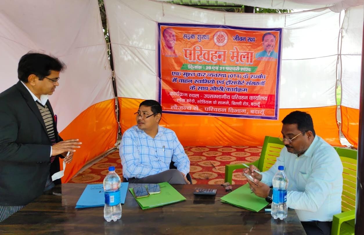 बदायूं। परिवहन आयुक्त उत्तर प्रदेश एवं जिलाधिकारी अवनीश राय बदायूं द्वारा दिए गए निर्देशों के अनुपालन में परिवहन कार्यालय बदायूं में एक मुक्त कर योजना के तहत 7500 “के जी” तक के वाहनों को आच्छादित करने हेतु दिनांक 20 से 21 फरवरी 2026 तक परिवहन कार्यालय बदायूं में परिवहन मेले का आयोजन किया जा रहा है।