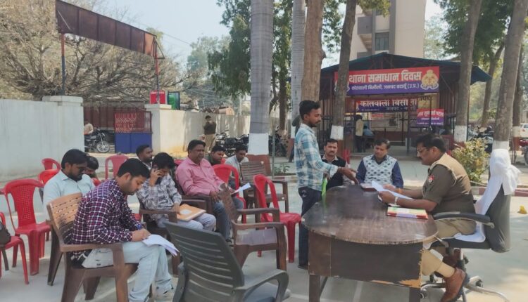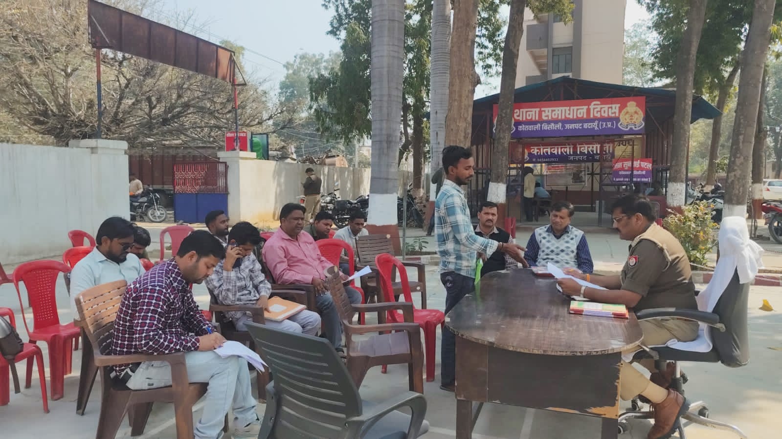 बिसौली,बदायूं। कोतवाली परिसर में आयोजित थाना समाधान दिवस में शनिवार को पुलिस इंस्पेक्टर हरेंद्र सिंह ने लोगों की शिकायतों को सुना। समाधान दिवस में दो लोग पैमाइश से संबंधित शिकायतों को लेकर पहुंचे, जिसमें से एक शिकायत मौके पर ही निस्तारित कर दी गई। इस दौरान पुलिस इंस्पेक्टर राजेंद्र सिंह पुंडीर ने समाधान दिवस में पुलिस से संबंधित शिकायतों को धैर्यपूर्वक सुना और फरियादियों को शीघ्र और पारदर्शी समाधान का आश्वासन दिया। इस दौरान राजस्व निरीक्षक विनोद शर्मा, शादाब अली, संदीप कुमार आदि उपस्थित रहे।