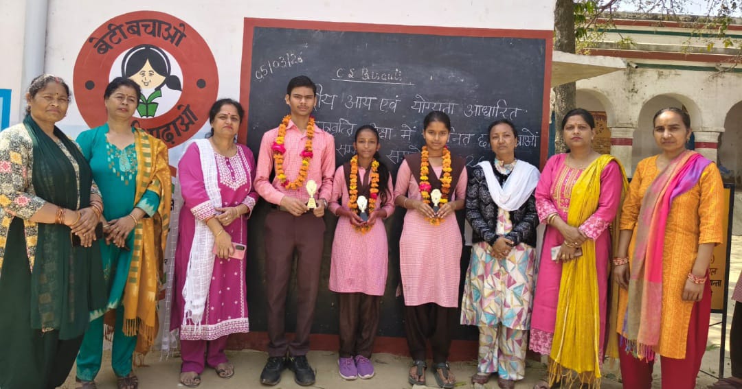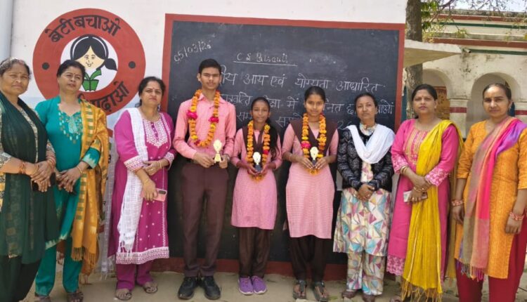छात्रवृत्ति परीक्षा 2026 में चयनित ह्रदेश ने दशमी रैंक, पूजा देवी ने 22वीं रैंक, पुष्पा ने 42वीं रैंक आने पर विद्यालय की इस उपलब्धि से शिक्षकों और अभिभावकों में खुशी का माहौल।